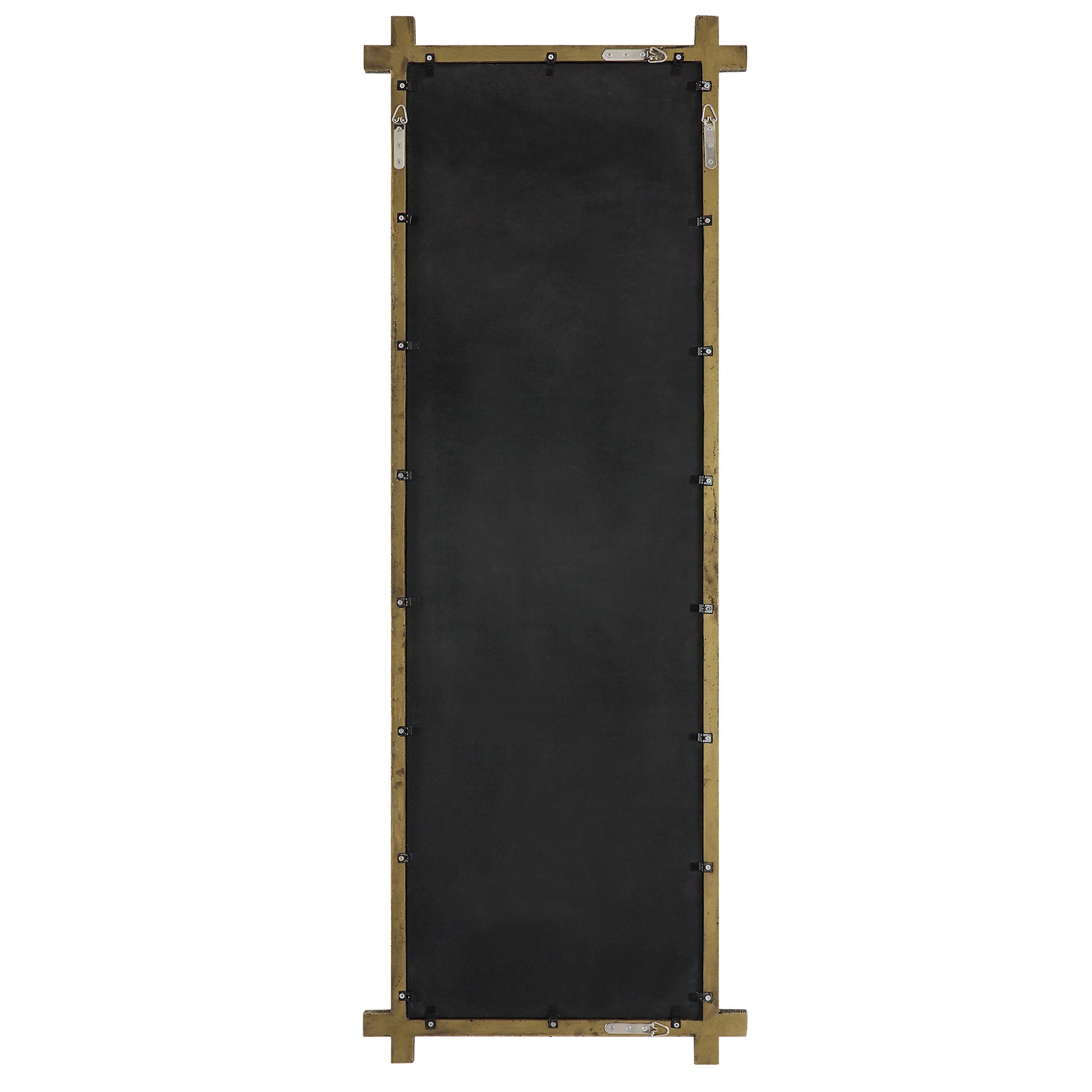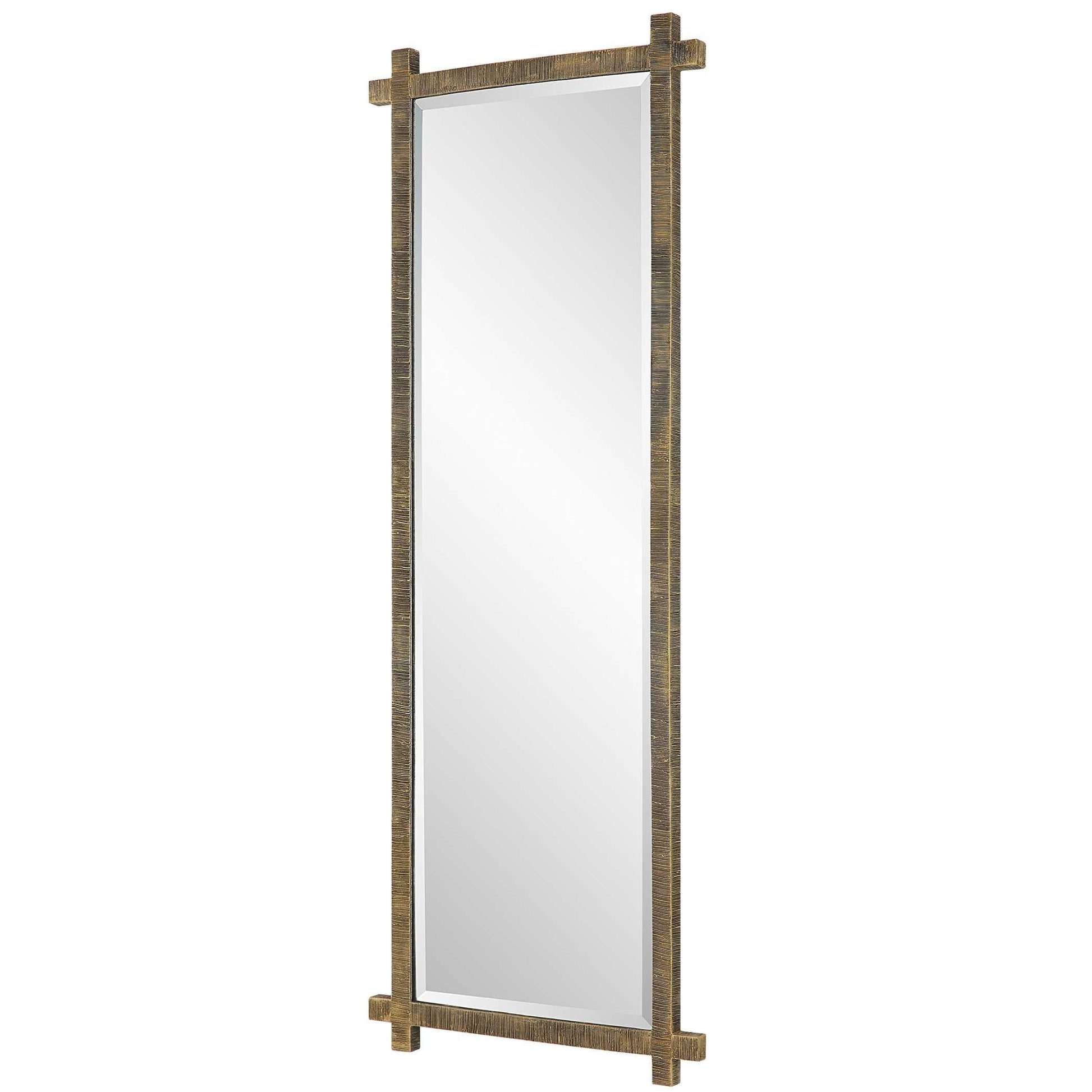 This Mirror Features A Heavily Antique Gold Finished Frame With Ribbed Texture, Adding A Tribal Feel. The Piece Has A Generous 1 1/4" Bevel And May Be Hung Horizontal Or Vertical.