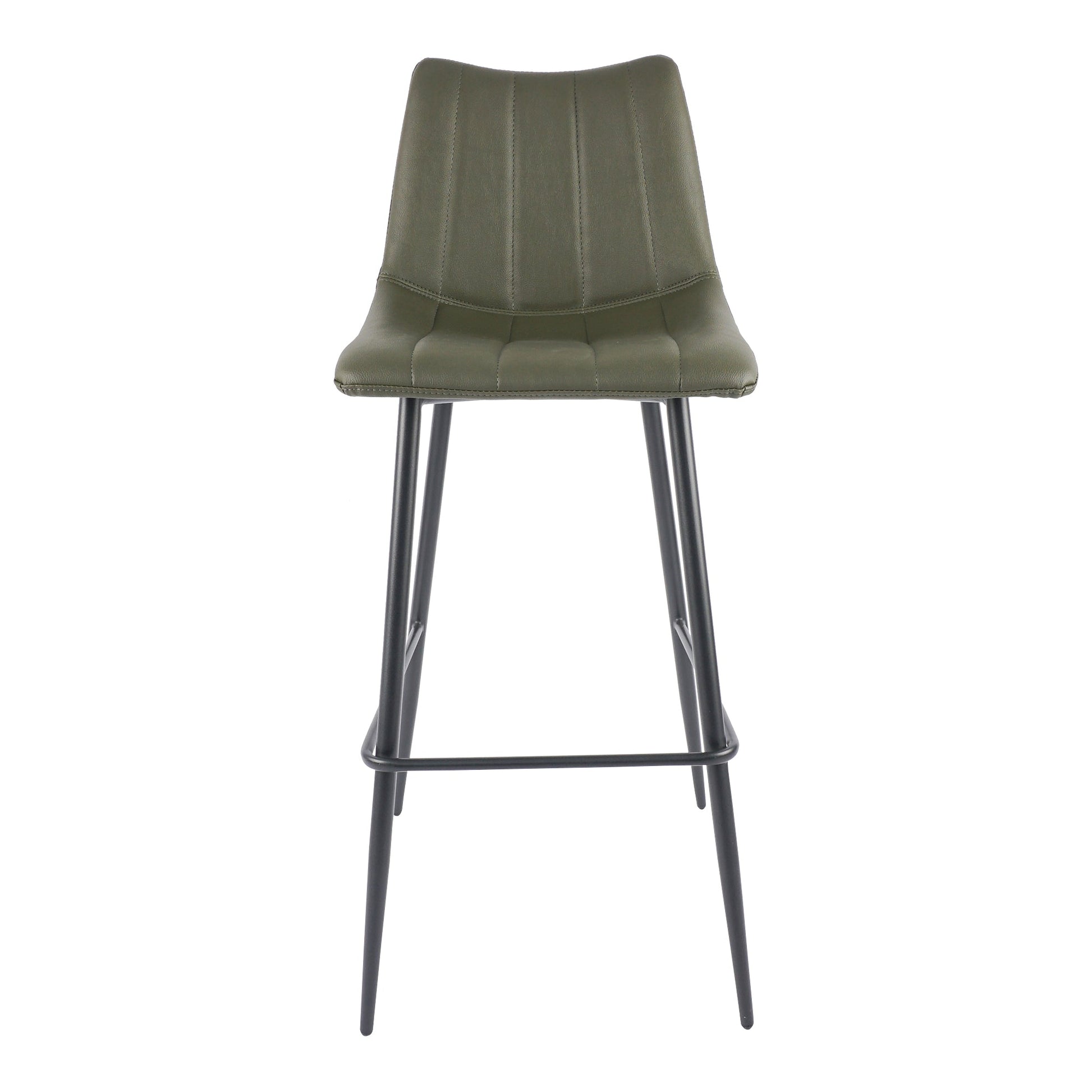 A contemporary bar stool that is as sleek as it is comfortable. The Alibi bar stool features striking vertical line stitches that add subtle detail to its monochromatic design. A soft vegan leather seat adds comfort and classic appeal.