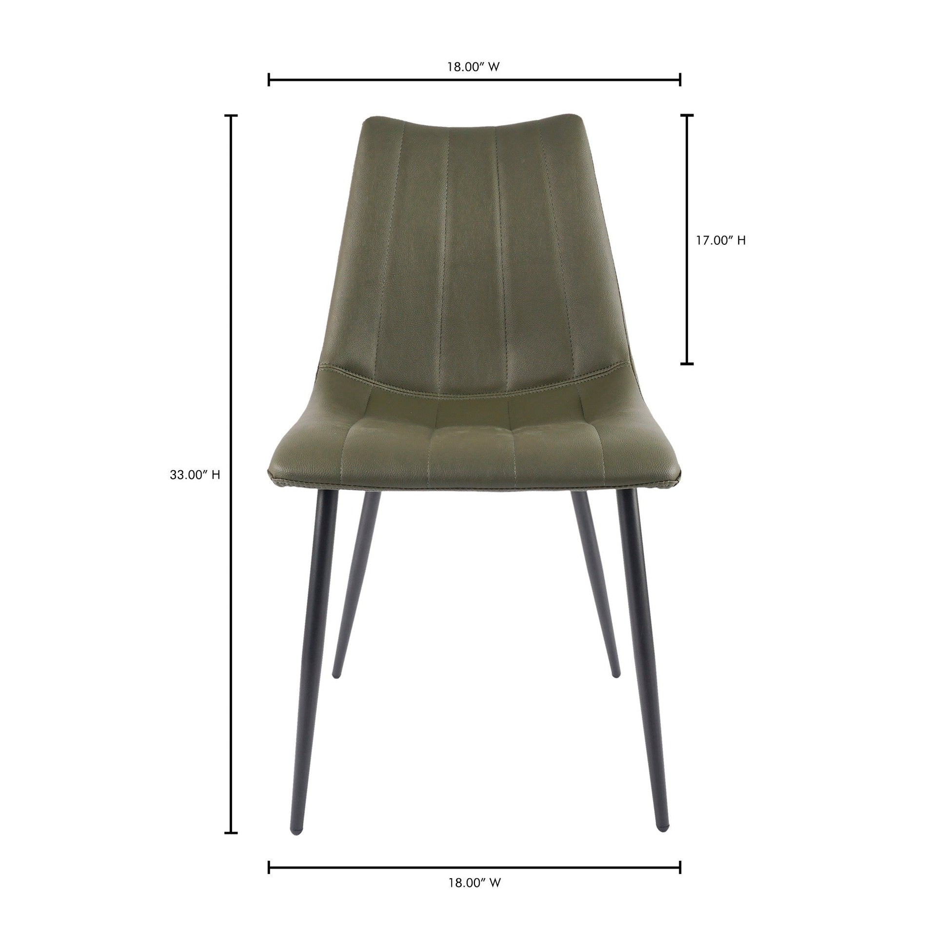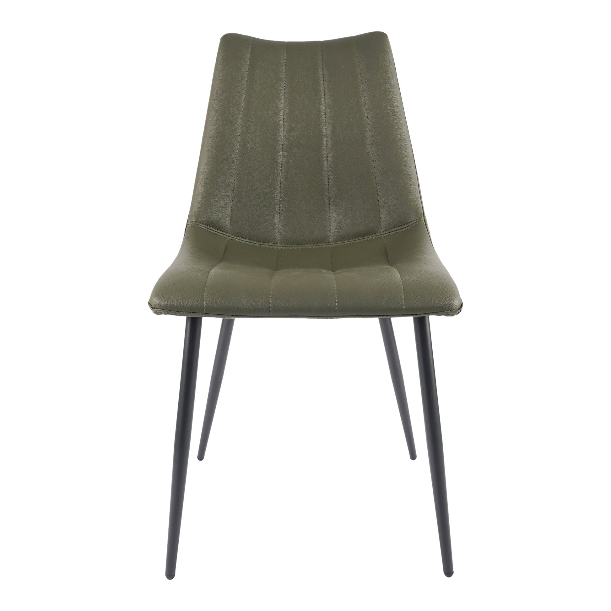 A new take on contemporary dining. The Alibi dining chair’s sleek modern aesthetic features striking vertical accent stitching, adding subtle detail to its simple and elegant design. An easy-to-clean, soft vegan leather seat is perfectly shaped for comfort, so guests and hosts alike can relax after the digestif is served.