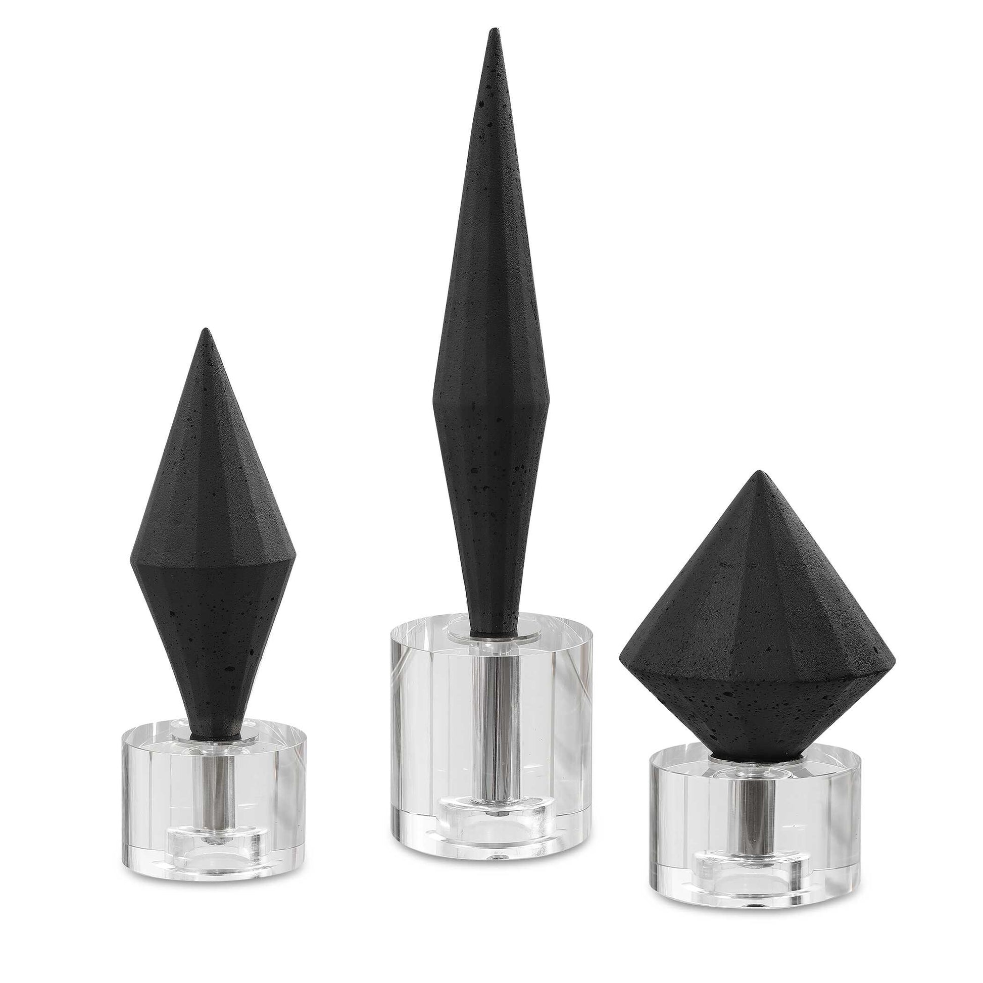 Elegant Black Diamonds Crafted From Black Man-made Stone Atop Crystal Bases. Sizes: S-5x7x5, M-4x10x4, L-4x14x4