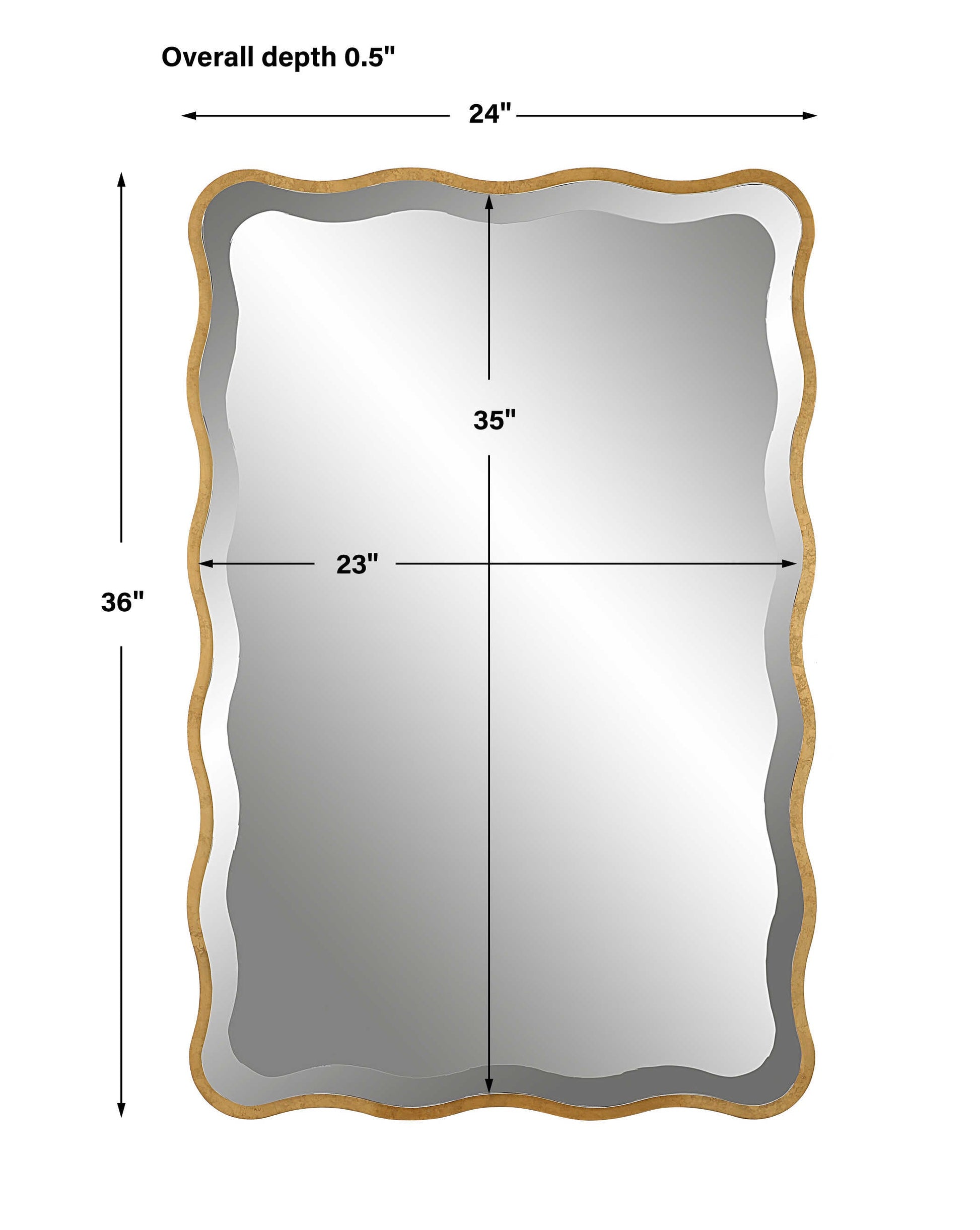 Showcasing A Feminine Scalloped Edge, This Shaped Wood Mirror Adds Whimsical Flair To Any Design. The Mirror Is Finished In An Antiqued Gold Leaf, And Has A 1" Bevel.