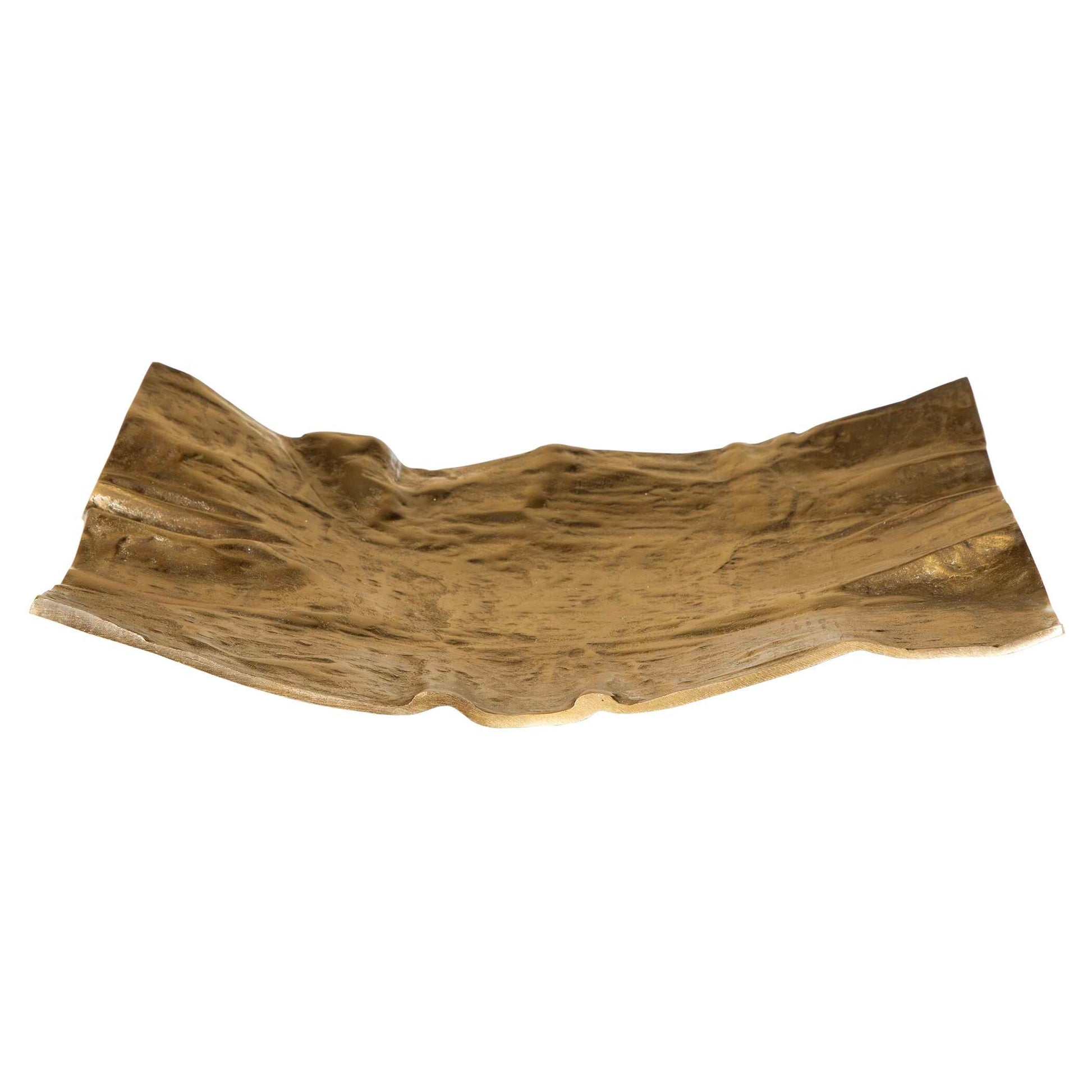 Handcrafted Cast Aluminum Wall Accent Showcases A Heavily Textured Organic Shape In A Brass Plated Finish. A Circular Hanger On The Back Provides Countless Hanging Options, Enabling Truly Unique Wall Designs. Felt Pads Also Included For Use As A Tabletop Tray.