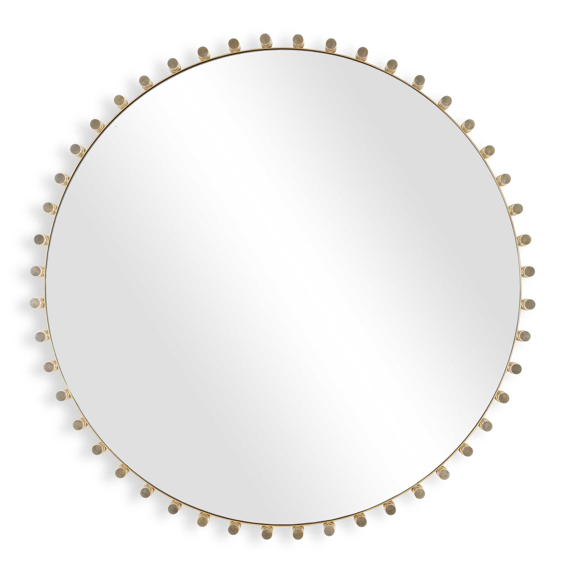 The Avelyne Round Mirror Blends Elegance With Modern Design, Featuring A Plated Antique Brass Outer Frame That's Surrounded By Thick Acrylic Rods.