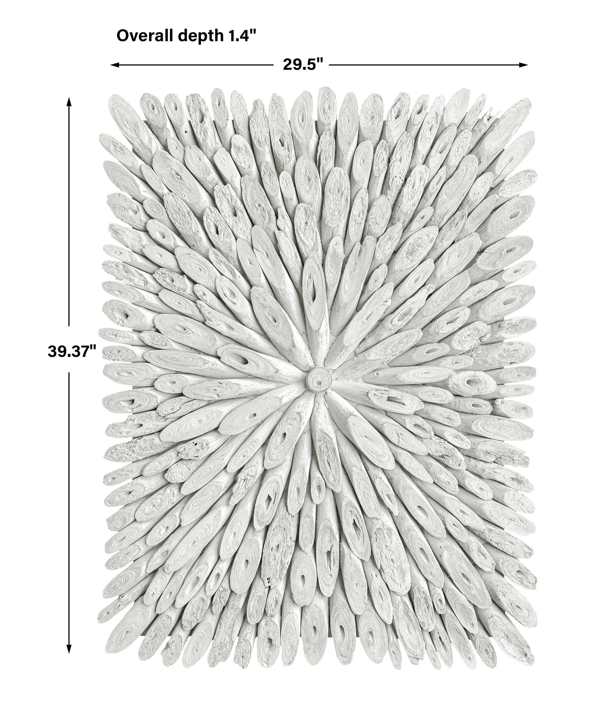This Wood Wall Panel Is Handcrafted From Individually Cut Natural Driftwood Pieces In A White Washed Finish, Artfully Arranged In A Striking Sunburst Pattern. May Be Hung Horizontal Or Vertical.