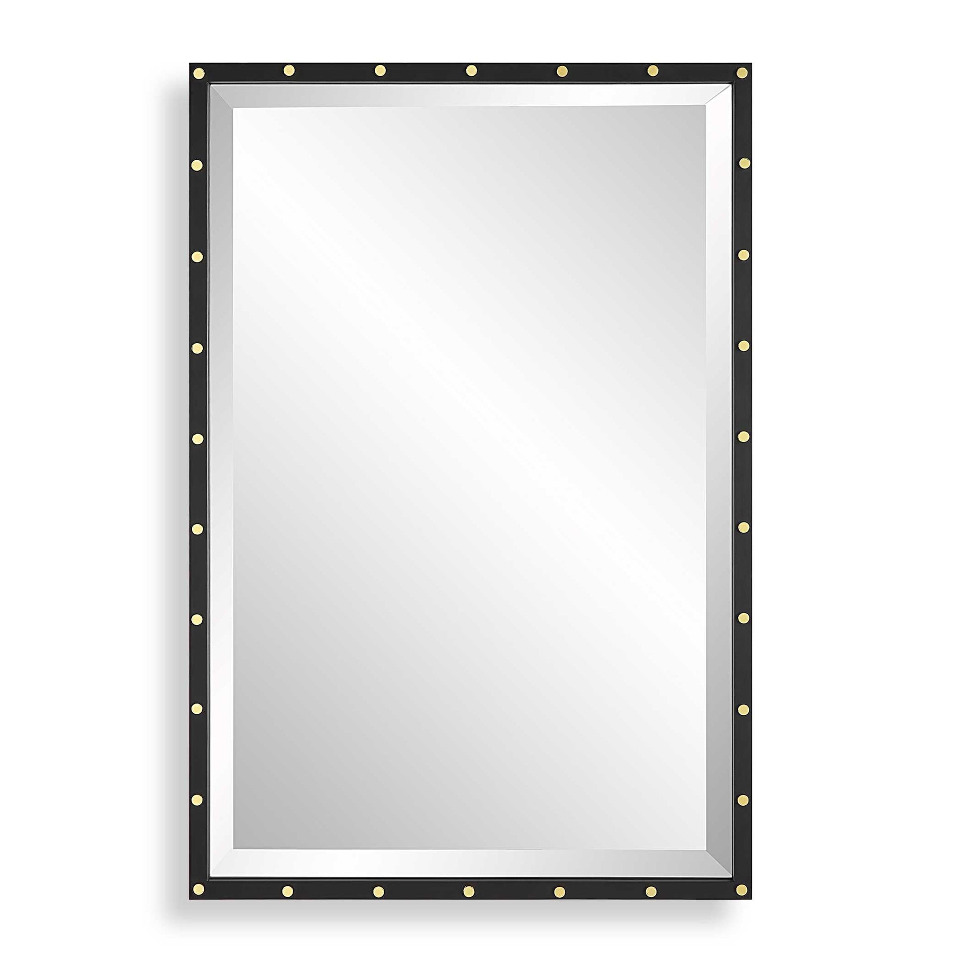 This Urban Industrial Design Features An Iron Frame Finished In Matte Black Adorned With Plated Brass Smooth Screw Caps. Mirror Has A Generous 1 1/4" Bevel. May Be Hung Horizontal Or Vertical.